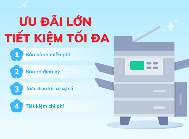Dịch vụ cho thuê máy photocopy cung cấp các dòng máy hiện đại, in ấn nhanh, tiết kiệm chi phí, phù hợp cho văn phòng và doanh nghiệp. Máy được bảo trì định kỳ, hỗ trợ kỹ thuật tận nơi, đảm bảo hoạt động liên tục, hiệu quả, không gián đoạn công việc.